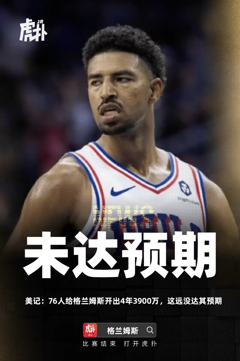 虎扑09月26日讯 根据美国记者Gina Mizell的消息,76人对格兰姆斯开出了4年3900万美元的合同。